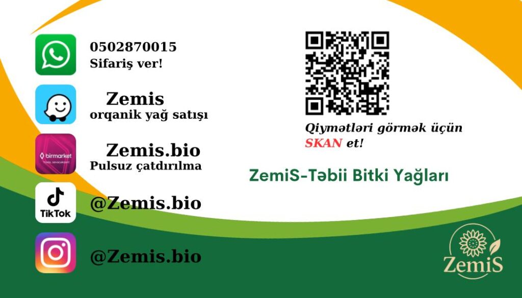 ⭐⭐⭐⭐⭐“ZemiS yağlarını ilk dəfə sınadım və nəticə məni qane etdi. Qara zirə yağının dadı təmizdir, ağır deyil. WhatsApp-la sifariş rahat oldu, məhsul vaxtında gəldi. Artıq evdə əsas yağları ZemiS-dən alıram.”
